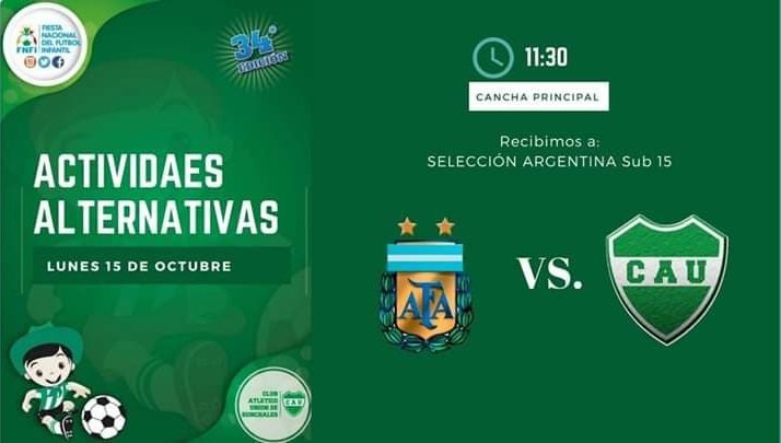 Sin lugar a dudas que el inicio de la última jornada de competencias de la 34° Fiesta Nacional del Fútbol Infantil estará a la altura de las circunstancias. Antes del mediodía, convocado para las 11.30, los asistentes a la cancha principal de la entidad albiverde podrán disfrutar del partido amistoso entre un combinado del club y la Selección Nacional Sub15.