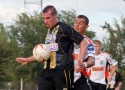 Luego, la visita comenzó a acomodarse en el campo de juego y mediante algunos buenos contragolpes logró inquietar a «Superman» Sand… quien respondió bien.