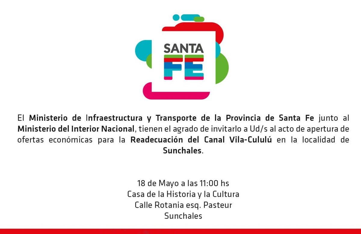 La Municipalidad de Sunchales invita a la conferencia de prensa que realizará el Ministro de Infraestructura y Transporte de la Provincia de Santa Fe, José León Garibay, junto al intendente municipal, Gonzalo Toselli. En la jornada de hoy se confirmó la presencia del Gobernador Miguel Lifschitz.