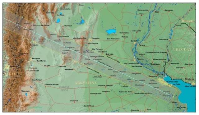(Por: Alfa Centauro) – El 2 de julio de 2019 será visible desde Argentina y Chile un eclipse total de sol, uno de los eventos naturales más espectaculares que se pueden disfrutar en nuestro planeta. Desde una estrecha franja de territorio la Luna cubrirá por un par de minutos a todo el disco solar. En esos minutos, donde la umbra pase sobre los afortunados observadores que se encuentren dentro de la franja de totalidad, el día se transformará casi en noche, un crepúsculo se verá a todo alrededor del horizonte, serán visibles estrellas, y podrá verse la difusa corona solar, la atmósfera externa del Sol que únicamente puede ser vista durante la totalidad.