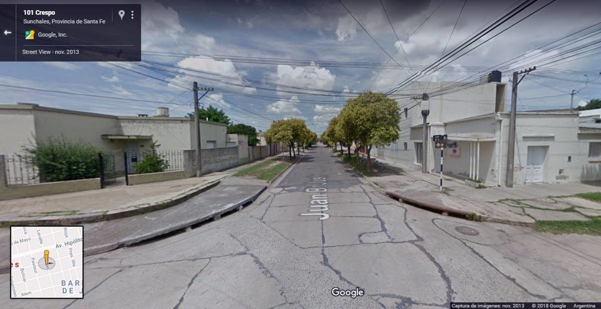 La esquina de calles Juan B. Justo y Crespo, que será intervenida desde el lunes próximo (Foto: Google Maps).