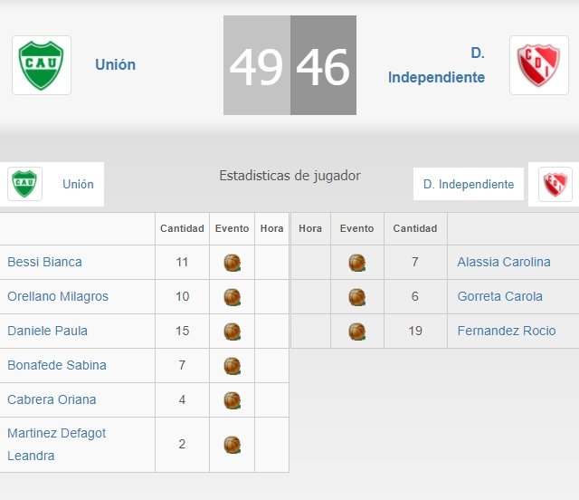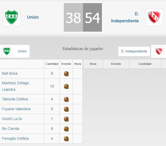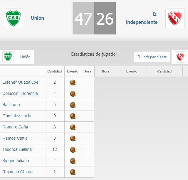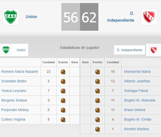 – Unión 38 vs. Independiente Ataliva 54.