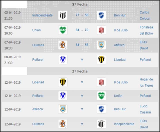 Unión 84: Matías Borda Bossana 26, Nicolás Zurvera 18, Franco Periotti 9, Máximo Blangini 9 y Matías Loro 9 (fi). Guillermo Spila 0, Juan Cipollatti 6 y Joaquín Gariboldi 7. DT: Martín Méndez.