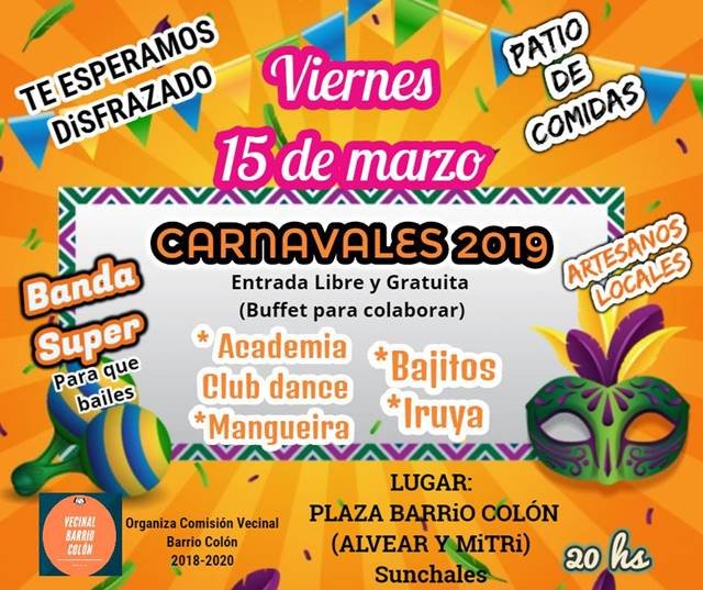 En los barriosBarrio Colón Barrio Colón prolonga los Carnavales 2019 14/03/2019 Por Redacción SH 521 Compartir FacebookTwitterWhatsAppEmail Con la participación de las comparsas Mangueira, Iruya, Bajitos y la Academia Club Dance, mañana viernes y con entrada libre y gratuita se realizará una noche más de desfile de carnaval. TemasCarnavales 2019colónEn los barrios Compartir FacebookTwitterWhatsAppEmail Relacionadas Epe: Anticipan corte de energía para el domingo 06/02/2026 EPE anticipa corte de energía para el domingo 23/01/2026 Los Pumas extendieron el comodato de su sede local 15/01/2026 Ultimas noticias ARB: Unión va palpitando el nuevo campeonato 12/03/2026 Festram, el paro y su impacto local 11/03/2026 Cuatro detenidos tras múltiples allanamientos por amenazas y robos 11/03/2026