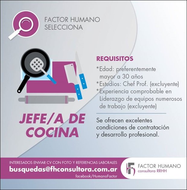 ClasificadosDestacadosEmpleos Búsqueda de Jefe de Cocina 19/05/2015 Por Material de Internet 121 Compartir FacebookTwitterWhatsAppEmail Temasbúsqueda laboralClasificadosempleoJefe de Cocina Compartir FacebookTwitterWhatsAppEmail Relacionadas San José: Búsqueda de docente de Inglés 05/02/2026 El Colegio San José busca docente de inglés 07/08/2025 Colegio «San José»: Búsqueda de docente de Inglés 14/02/2025 Ultimas noticias Mal uso y abuso del verbo: Arrancar 16/02/2026 Carnavales: Reprogramados para mañana martes y con nuevo horario de inicio 16/02/2026 Carnavales: Reprograman la segunda noche 15/02/2026