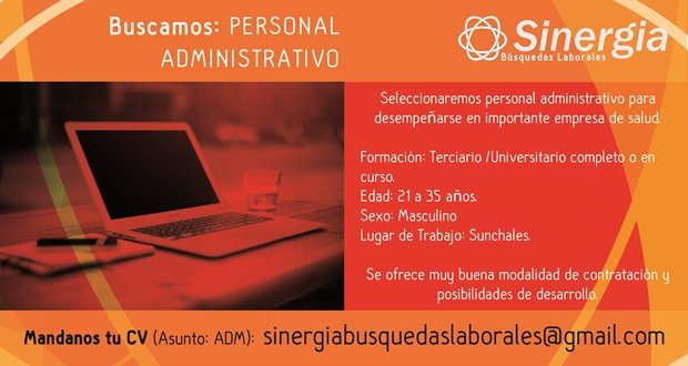 ClasificadosDestacadosEmpleos Búsqueda de Personal Administrativo 20/01/2015 Por Material de Internet 280 Compartir FacebookTwitterWhatsAppEmail Temasbúsqueda laboralClasificadosempleoPersonal Administrativo Compartir FacebookTwitterWhatsAppEmail Relacionadas San José: Búsqueda de docente de Inglés 05/02/2026 El Colegio San José busca docente de inglés 07/08/2025 Colegio «San José»: Búsqueda de docente de Inglés 14/02/2025 Ultimas noticias Mal uso y abuso del verbo: Arrancar 16/02/2026 Carnavales: Reprogramados para mañana martes y con nuevo horario de inicio 16/02/2026 Carnavales: Reprograman la segunda noche 15/02/2026