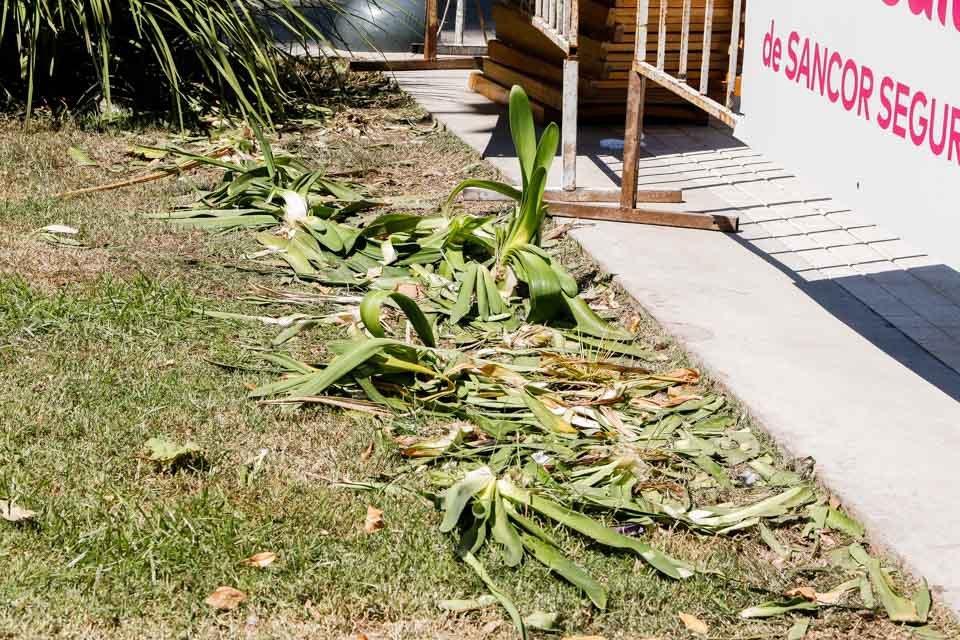 Seguramente las plantas se renueven en la semana, los daños son importantes también en otros sectores de espacios verdes y las luces se mantuvieron encendidas a lo largo del fin de semana, tanto de día como de noche. Detalles a tener en cuenta si se quiere llevar la fiesta a un nivel superior.