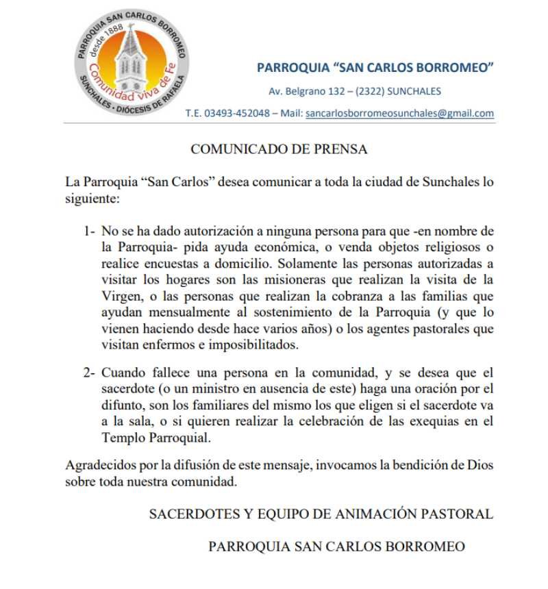 La Parroquia alerta sobre ventas no autorizadas