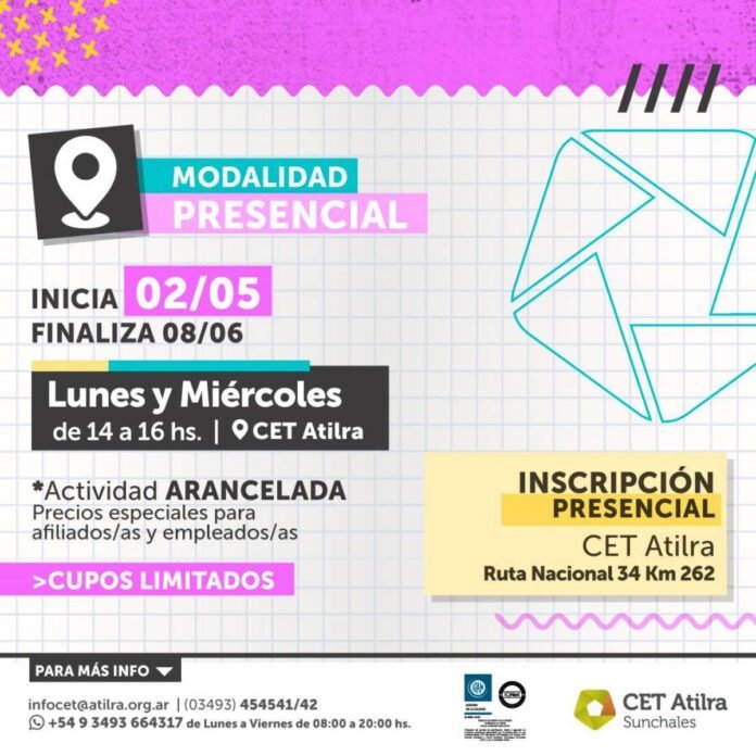 La misma comenzará el próximo lunes 2 de Mayo, bajo la modalidad presencial. Su cursado se realizará los días lunes y miércoles por la tarde, siendo una actividad arancelada y con cupos limitados.