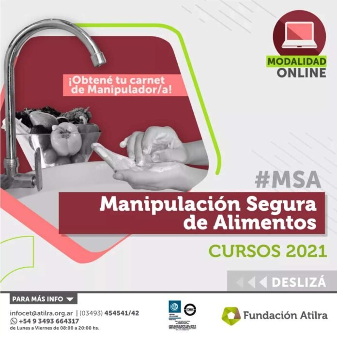 Desde la fundación Atilra se difundió el inicio de un nuevo Curso de Manipulación Segura de Alimentos, en una propuesta que se inicia el próximo lunes 20 y que es válida para residentes de la provincia de Córdoba.