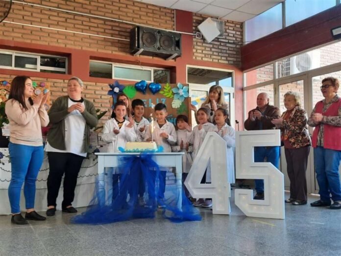 Cuarenta y cinco años de fructífera trayectoria demandaron efectuar un alto en la travesía para volver la mirada hacia el ayer, rendir homenajes, mostrar los logros y festejar el acontecimiento. El acto, consumado en el amplio y hermoso patio cubierto, contó con la presencia de autoridades del Municipio y del Cooperativismo, además de la Supervisora Analía Gómez de Tosello, ex directores y docentes, exalumnos, cooperadores a través de los años y numeroso público relacionado con la institución educativa.