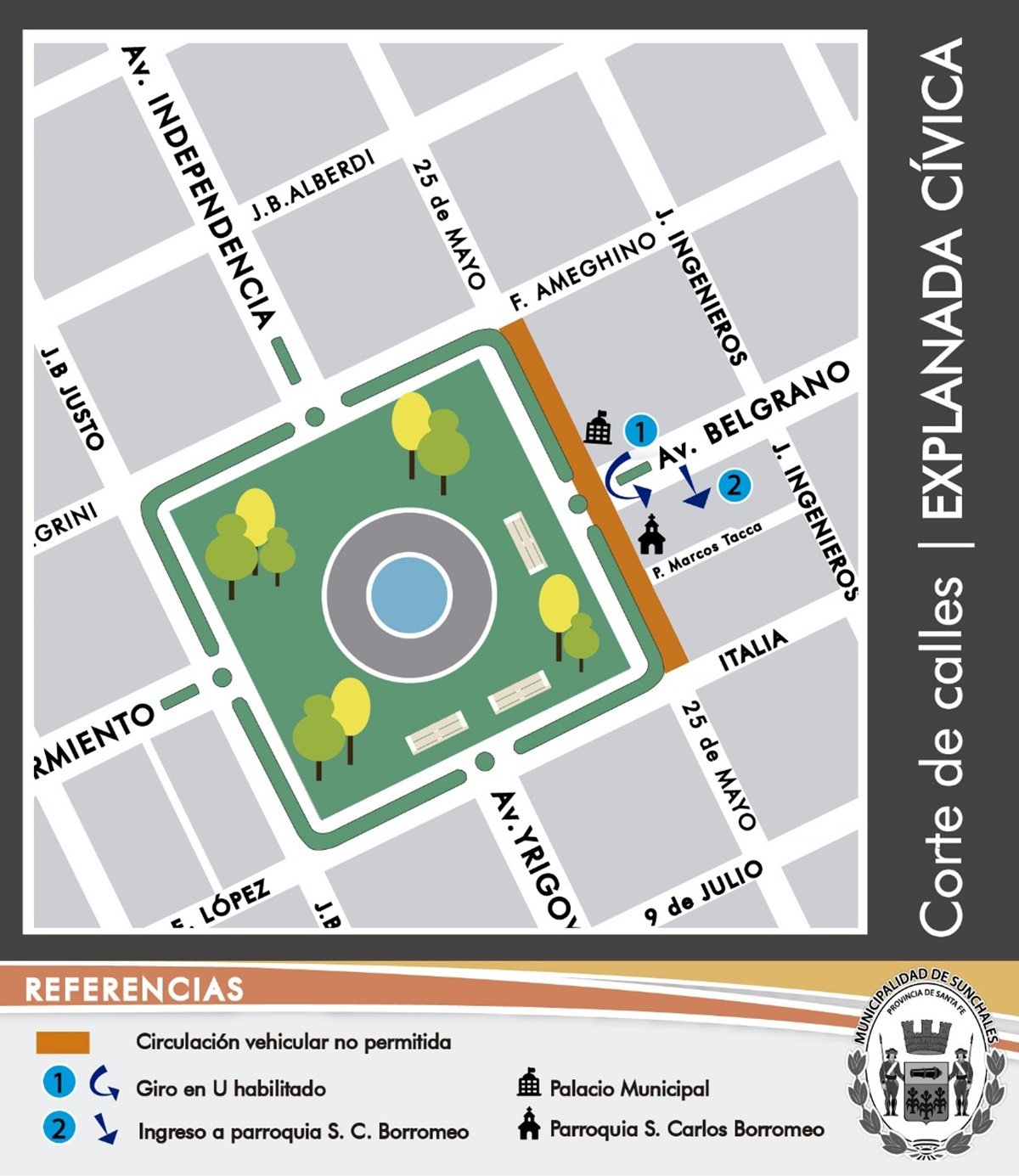 En cuanto al ingreso a la Parroquia, se mencionó que, debido a los cortes mencionados, el único acceso habilitado será por avenida Belgrano ya que el pasaje Marcos Tacca también permanecerá cerrado.