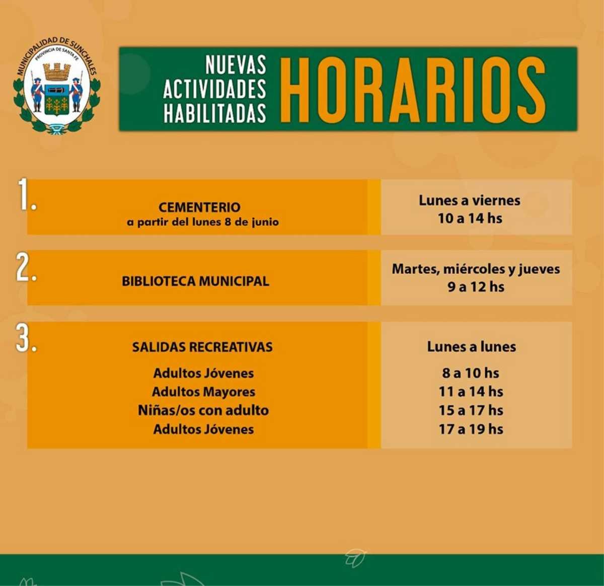 A la espera de las nuevas definiciones que en cuanto a flexibilización se generarán en los días venideros desde la Provincia, desde el Municipio informaron acerca de novedades implementadas en cuanto a horarios de caminatas recreativas, así como también se definió el horario de funcionamiento de la Biblioteca Pública «Pedro Echagüe» y el Cementerio local, estando habilitado este último desde el lunes venidero.