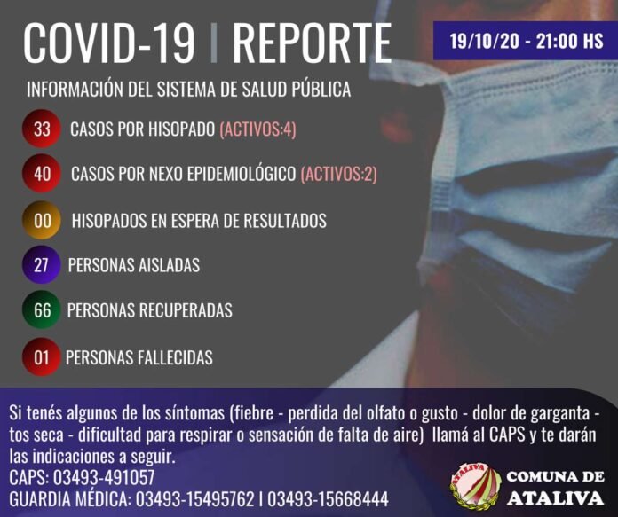 Por intermedio de su Reporte Epidemiológico, la Comuna de Ataliva confirmó tres nuevos casos positivos en dicha localidad, una persona Recuperada pero también, sumó su primer deceso como consecuencia del Covid.
