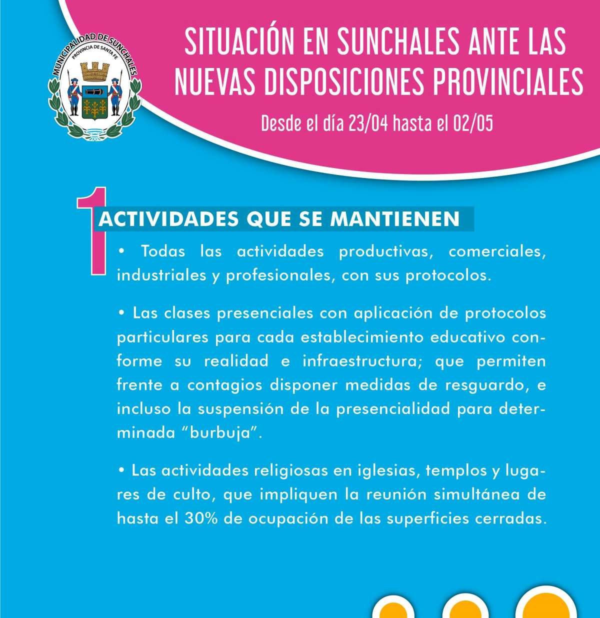 Mediante una publicación en sus redes sociales, el Municipio dio a conocer cómo será el impacto local de las resoluciones adoptadas ayer por la Provincia. Si bien la ciudad se suma a las mismas, se continuará con aquellas que vienen siendo más restrictivas localmente.