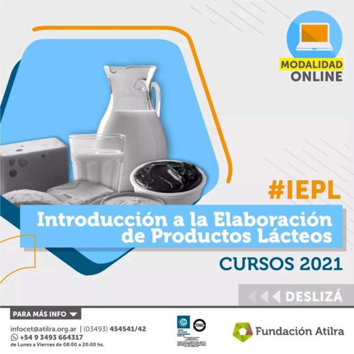 Fundación Atilra invita a la capacitación referida a la producción de lácteos, en modalidad virtual y totalmente gratuita. La misma -con cupos limitados- está centrada en la elaboración de productos lácteos, se inicia el próximo 25 de octubre y finaliza el 17 de noviembre.