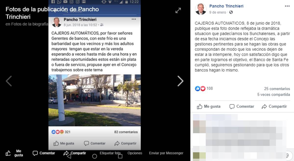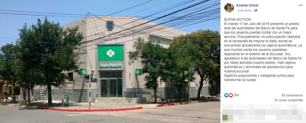 Con diferencia de horas, el Ejecutivo así como los concejales Andrea Ochat y Oscar Trinchieri, resaltaron en redes sociales la buena noticia que constituye la disposición de cajeros automáticos del Nuevo Banco de Santa Fe en el interior de la sucursal local.