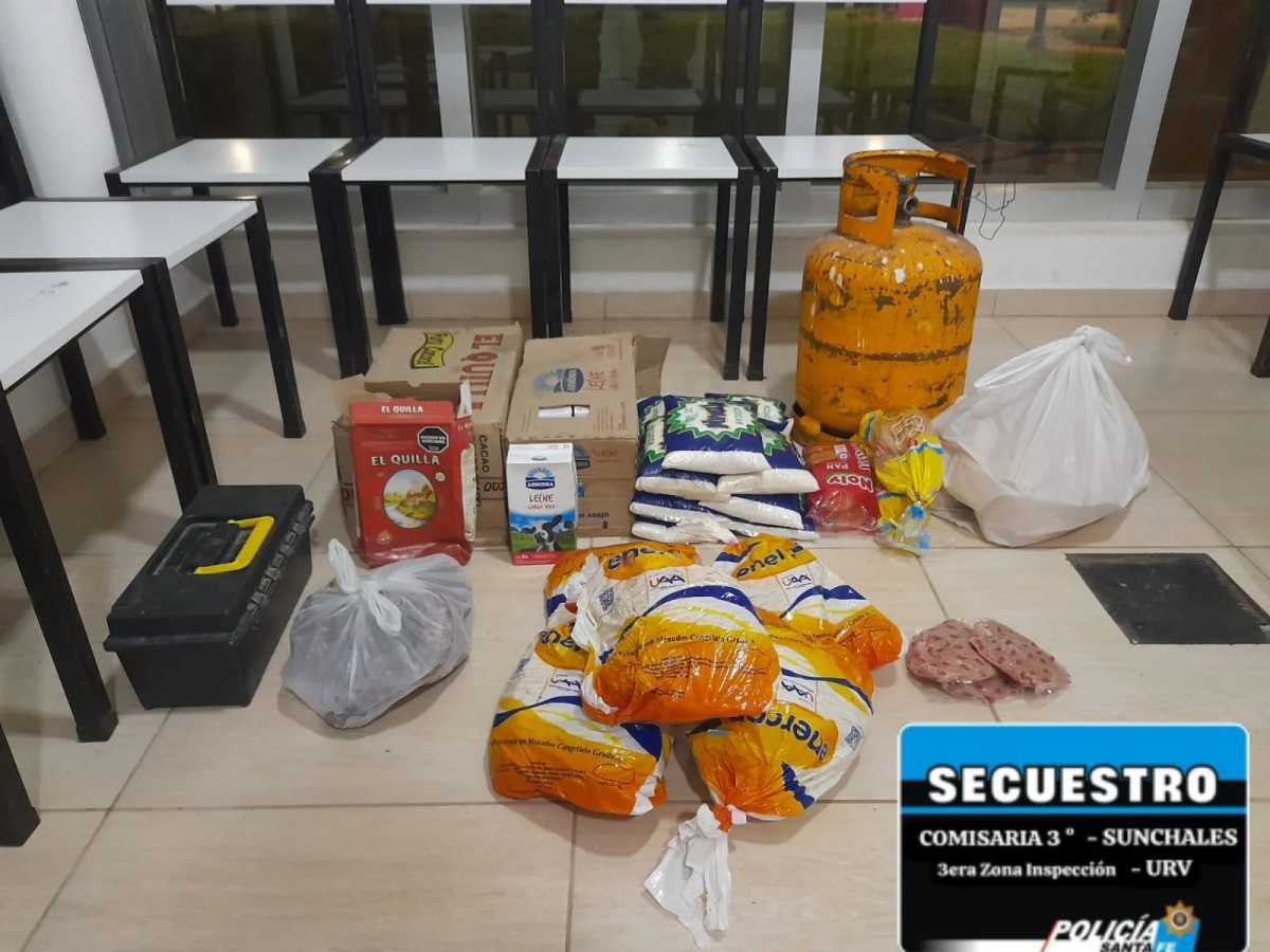 En efecto, y con recaudos legales pertinentes, procedieron a efectuar una requisa domiciliaria en la dirección apuntada según datos recabados y tras entrevistar a la moradora, accedieron y lograron recuperar una garrafa de gas, una caja de herramienta color negro con manija amarilla con dos pinzas, una tenaza, una llave pulsiana y un martillo, cajas de leche de un litro, varios paquetes de azúcar de un kg, un pack de diez cajas de cacao, cinco pollos crudos, doce chorizos parrilleros, una bolsa con pan, tres paquetes de pan de hamburguesa, tres paquetes de dos hamburguesas, alimentos y objetos que serían propiedad del comercio afectado.