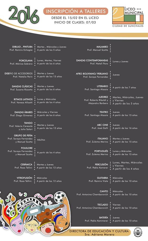Sociedad El Liceo se prepara para el inicio del ciclo 2016 10/02/2016 Por Redacción SH 327 Compartir FacebookTwitterWhatsAppEmail Las inscripciones a los Talleres estarán abiertas desde el próximo lunes. Los interesados deberán acercarse al Liceo (Rotania 702) en el horario de 7 a 12 y de 14 a 20. Además, se anticipó que las clases comenzarán a dictarse el venidero 7 de marzo. TemasculturaliceoMunicipalidadtalleres Compartir FacebookTwitterWhatsAppEmail Relacionadas Festram, el paro y su impacto local 11/03/2026 La Vigilia de Malvinas será Departamental 11/03/2026 Actividades Municipales por el Día de la Mujer 03/03/2026 Ultimas noticias Actividades parroquiales 13/03/2026 ARB: El Apertura levanta el telón 13/03/2026 Venta de Bonos de la Cooperadora del Hospital 13/03/2026