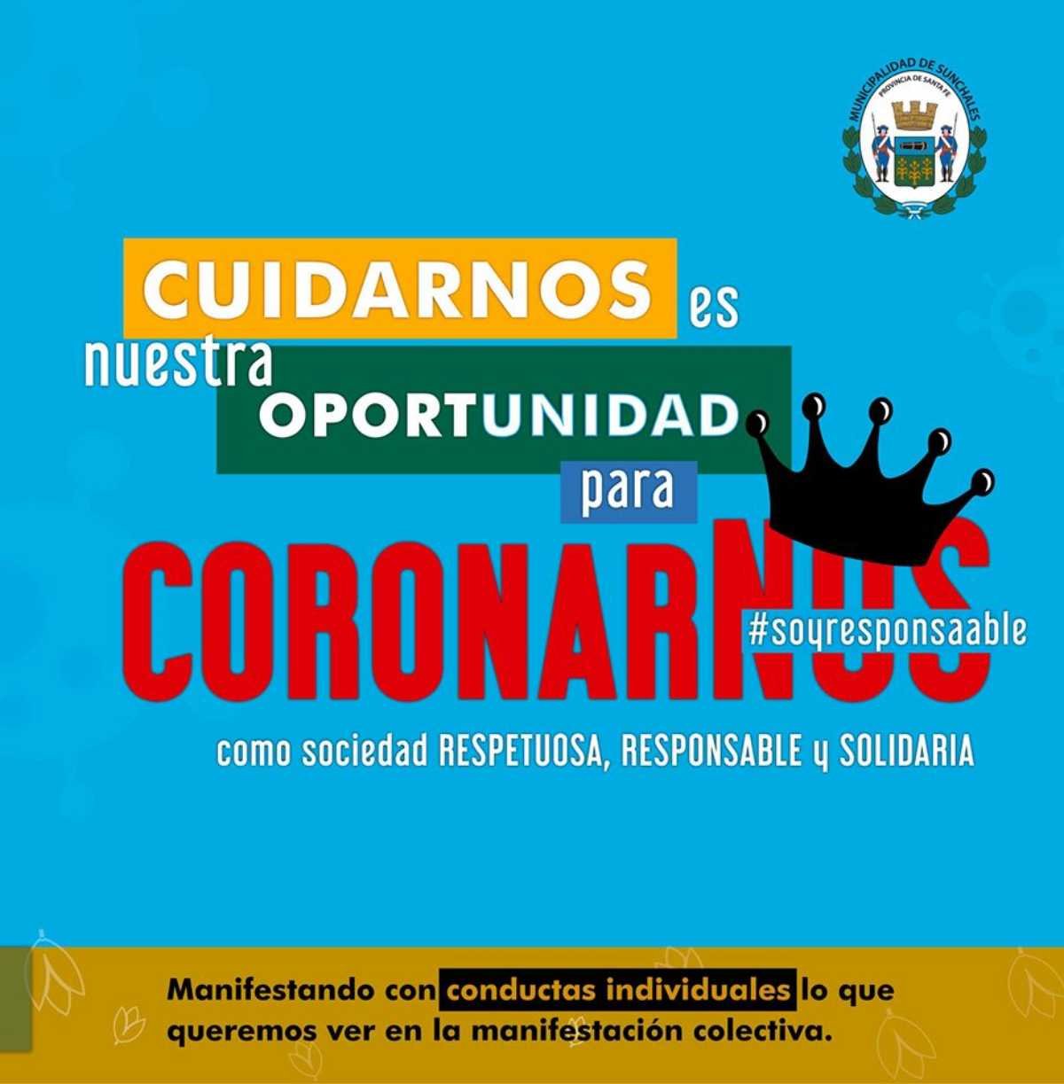 – Recordá: “Cuidarnos en nuestra oportunidad para CORONARNOS como una sociedad respetuosa, responsable y solidaria. Manifestando con conductas individuales lo que queremos ver en la manifestación colectiva”.
