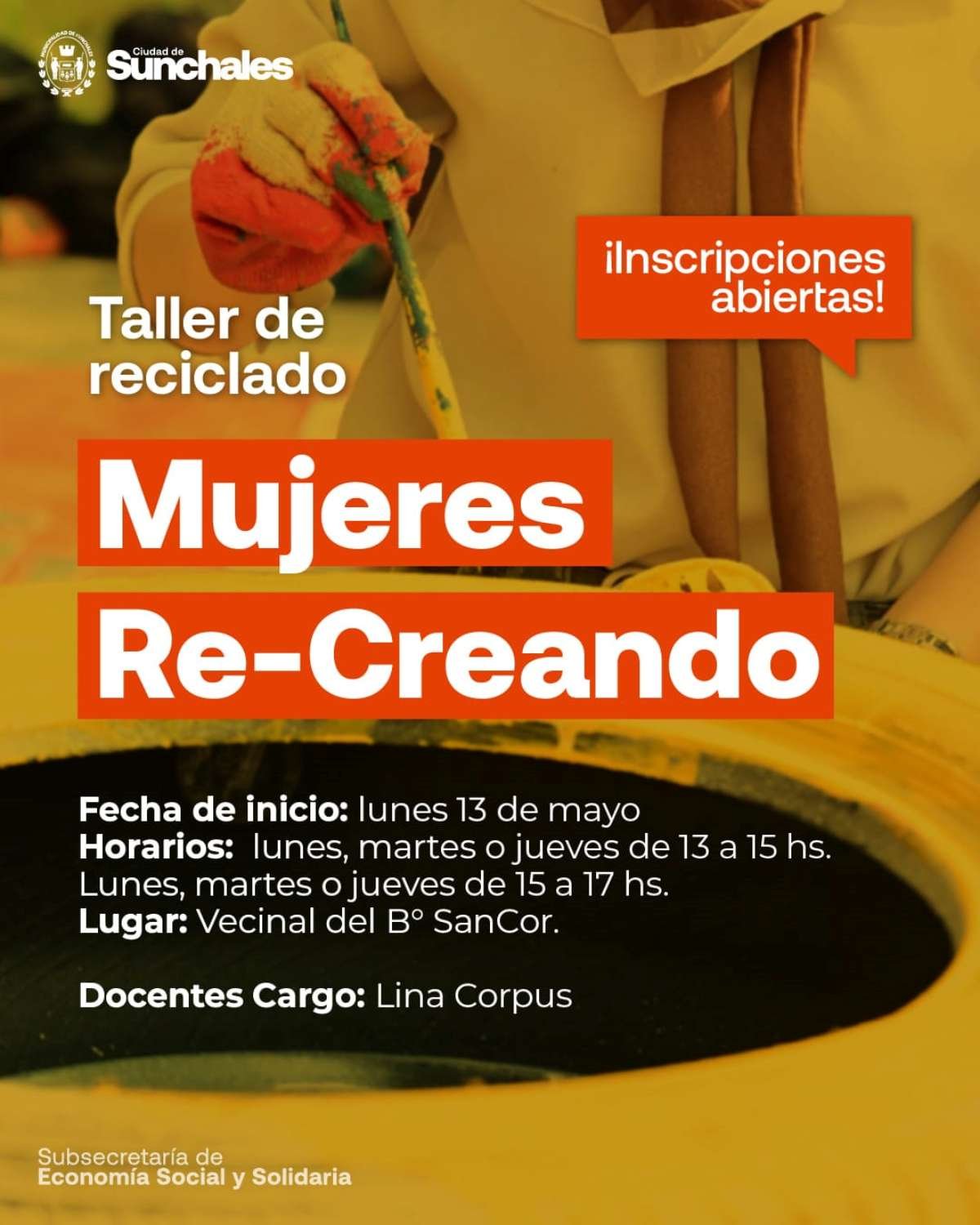 Desde el Municipio informaron que, con la coordinación de Lina Corpus, se ofrecerá un Taller de Reciclado el cual funcionará en la sede vecinal del Barrio SanCor.