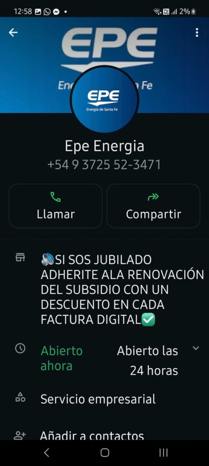 (Por: Prensa EPE) – La Empresa Provincial de la Energía (EPE) tomó conocimiento de que circulan en redes sociales publicaciones engañosas dirigidas a usuarios, fundamentalmente jubilados. Esto se suma a otros intentos de estafas vía Whatsapp o Facebook.