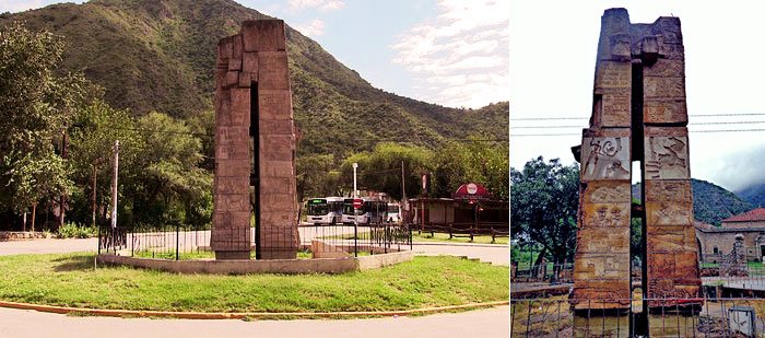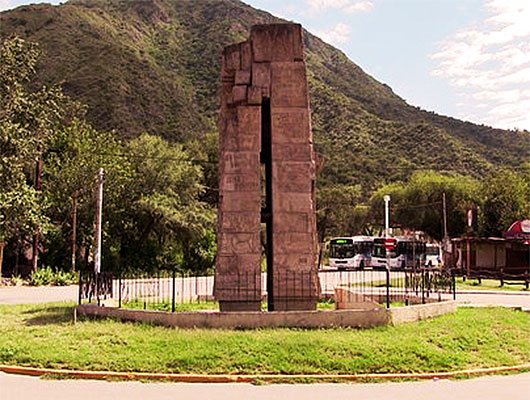 En el recorrido, un monumento atrajo mi atención más de la cuenta. Su construcción nueva, de 1993, consta de dos columnas de piedras que se elevan de manera paralela. Fuertes ambas, sólidas y garbosas. El espacio que las separa no es muy grande, hasta que, a cierta altura, las pilastras se unen y apretadamente cierran la obra con una superposición de piedras colocadas en espiral de cerámica que, en contraste con el trayecto anterior, conforman un solo compacto. En todas sus caras, escritores, poetas y personajes célebres dejaron sus mensajes. Me pregunté a quién se le había ocurrido y por qué, construir ese coloso sin significado conocido. A mi entender, era una construcción de dos trayectos separados hasta que se unía de manera casi apasionada. No fue su belleza lo que impactó, pero sí su afán de mostrarse como símbolo en un lugar cargado de historia.