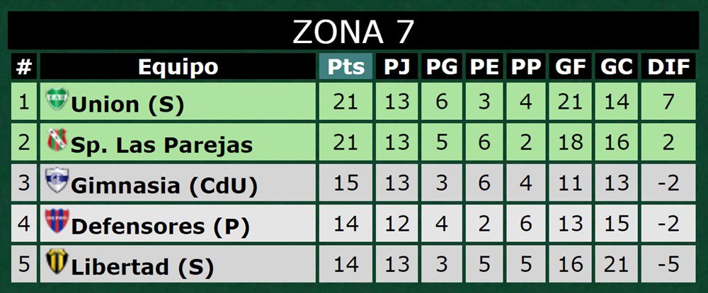 En el otro partido de la Zona, Sportivo Las Parejas goleó como local 4 a 1 a Gimnasia y Esgrima de CdU por lo que igualó al Bicho Verde en lo más alto de la Tabla. Con el empate, Libertad alcanzó al Depro pero el elenco entrerriano aún debe un partido por lo que lo puede dejar atrás otra vez.