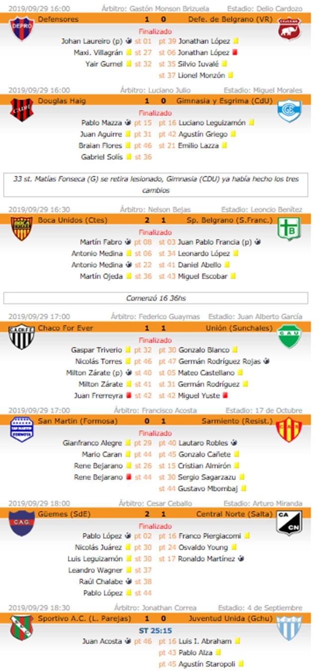 Chaco For Ever 1: Canutto, Vega, Lechner, Torres, Medina, Triverio, Gomez, Arguello, Ruano, Cáceres y Magno. DT: Norberto Acosta.