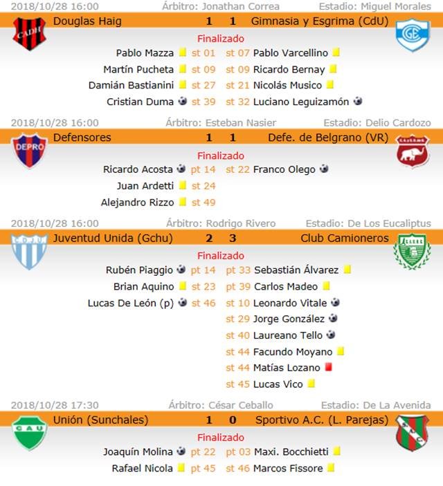 Sportivo Las Parejas (0): Emilio Rébora; Daian Vocos, Marcos Fissore, Sebastián Hernández y Juan Acosta; Diego Méndez, Diego Yacob, Facundo Fabello y Román Yassogna; Daniel Salvatierra y Maximiliano Bocchietti. DT: Nahuel Martínez.