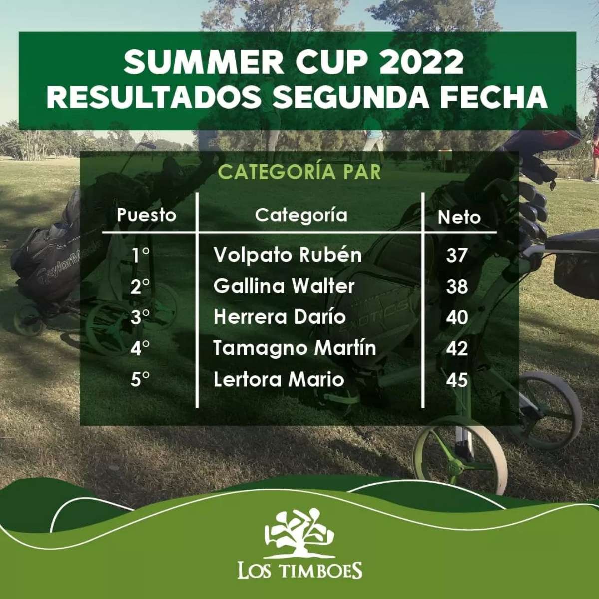 El club de Golf «Los Timboes» informó que este fin de semana se desarrollará la Tercera Fecha del ya tradicional certamen de verano que organiza y que se denomina «Summer Cup». El mismo, hasta ahora tiene una excelente respuesta de participación. Compartimos los resultados de la anterior Fecha.
