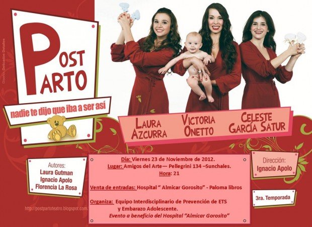 Basada en la autoría de Laura Gutman, Florencia La Rosa e Ignacio Apolo, Postparto, las actrices Victoria Oneto, Laura Azcurra y Celeste García Satur interpretan estas tres historias. ¿Cómo enfrenta una arquitecta exitosa la crianza de su hijo sola? ¿Qué sucede con su trabajo, con su vida, con sus valores, con sus seguridades?