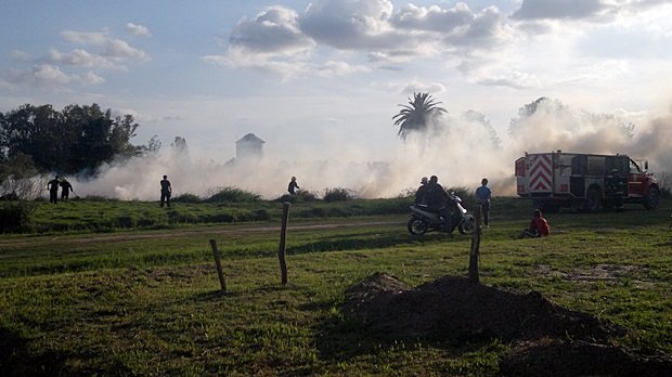 Pasadas las 17.30 los Bomberos recibieron el alerta de parte de vecinos para acudir a controlar lo que afortunadamente no pasó más allá de unos pastizales quemados.