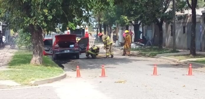 Por circunstancias que restaba establecer, en la mañana de hoy, un automóvil que se encontraba estacionado en calle Carlos Gardel al 500 tomó fuego, debiendo intervenir los Bomberos Voluntarios.