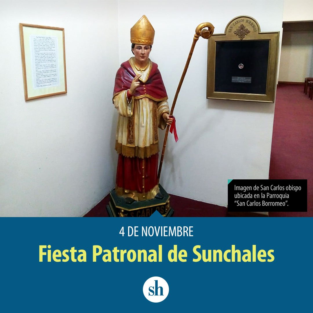 Hasta 1902 la Santa Patrona de Sunchales era Nuestra Señora del Perpetuo Socorro, actualmente patrona del Barrio Centro. Ese año llegó a nuestra ciudad el padre Santiago Annovazzi, quien provenía de la congregación de San Carlos Borromeo. Se cree que a partir de su arribo se cambió el Patrono ya que el primer sello oficial de la Parroquia es del 18 de septiembre de 1902 con el nombre del Santo.