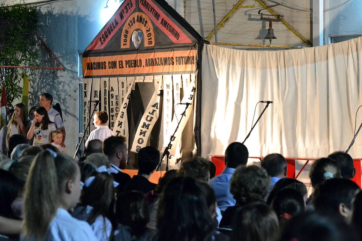 «Nacimos con el pueblo, abrazamos futuros», fue la frase con la cual se encabezó el acto por los 130 años de vida de la escuela N° 379 «Florentino Ameghino», aún cuando la fecha se evocó el pasado mes de marzo, ya que se tomó a todo el año 2018 como terreno de festejos y celebraciones.