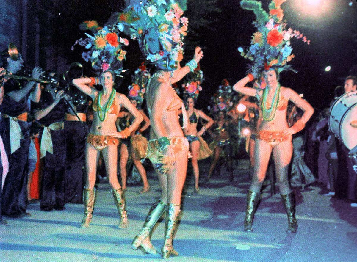 Más de 500 jóvenes fueron participantes en 1979 de tres comparsas: «Machebé» de San Cristóbal, «Ferrumbá» de Vera y «Carumbé», además de «Carumbecita» de Sunchales. Cada noche se completaban los festejos con las reuniones bailables en las pistas al aire libre de ambos clubes. Comenzando la década del 80 se ocupó la avenida Yrigoyen con «El desafío de las comparsas». Estuvieron presentes «Copacabana» de Corrientes además de la comparsa de San Cristóbal con lujoso vestuario.