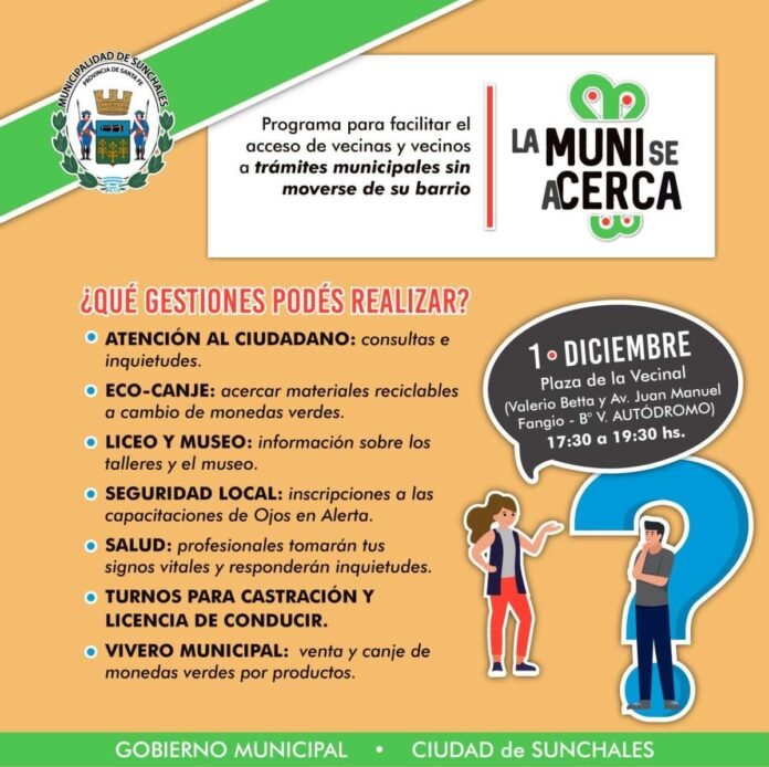 El Municipio informó que se retoma la actividad del programa «La Muni se acerca». A través de esta iniciativa, se llevan a los barrios de la ciudad diferentes representaciones de oficinas, permitiendo que los vecinos accedan a los mismos sin tener que trasladarse.