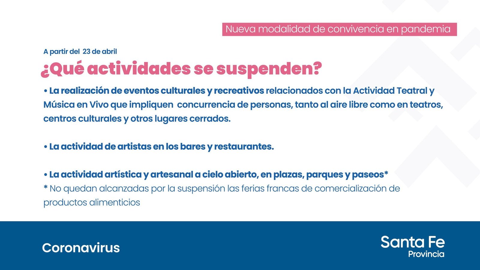 No quedan alcanzadas por la suspensión las ferias francas de comercialización de productos alimenticios.