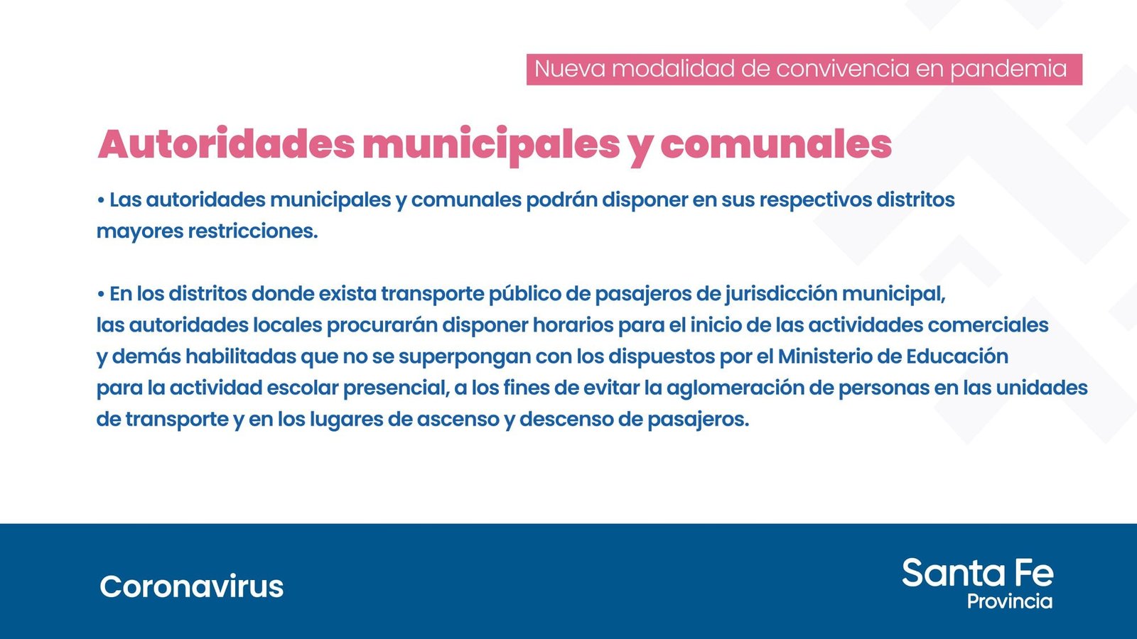 H) En los distritos donde exista transporte público de pasajeros de jurisdicción municipal, las autoridades locales procurarán disponer horarios para el inicio de las actividades comerciales y demás habilitadas que no se superpongan con los dispuestos por el Ministerio de Educación para la actividad escolar presencial, a los fines de evitar la aglomeración de personas en las unidades de transporte y en los lugares de ascenso y descenso de pasajeros.