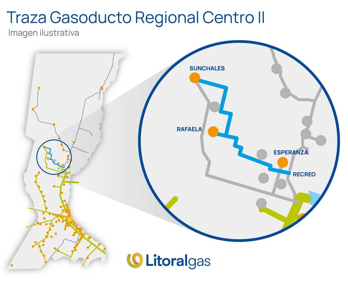 Este gasoducto, de más de 140 km, tiene por objetivo ampliar el sistema de distribución de gas natural de Litoralgas en la zona de Rafaela y Sunchales.