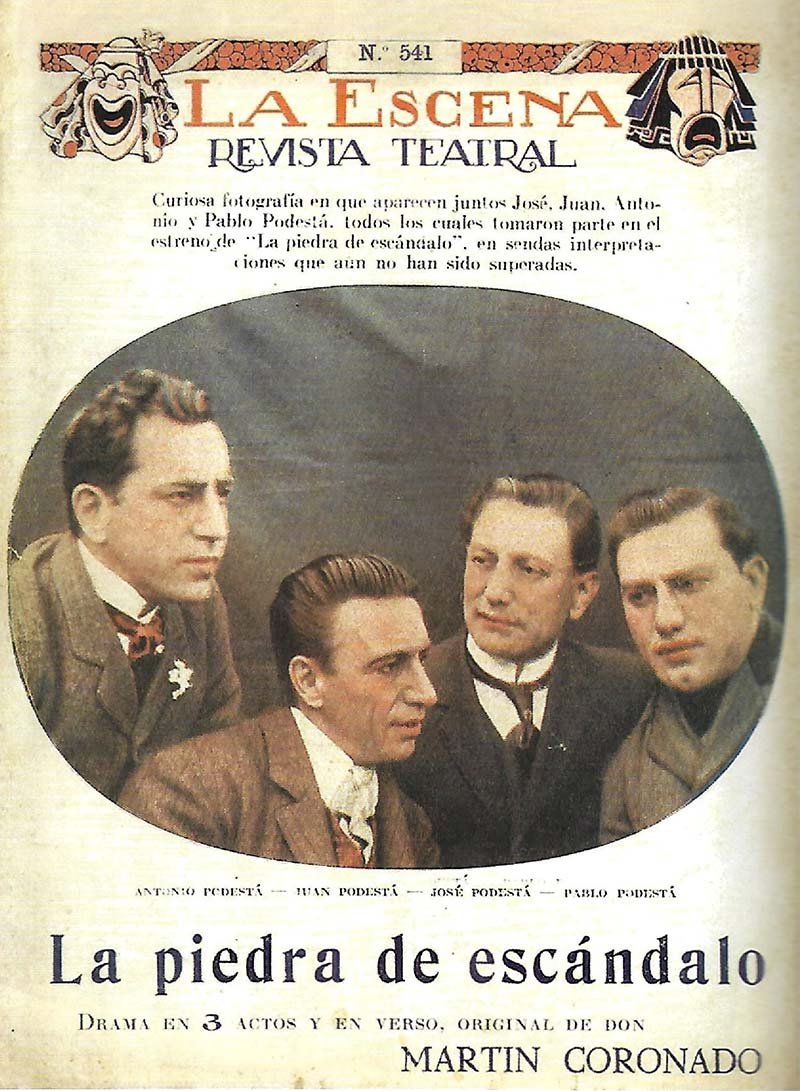 José Podestá y sus hermanos comenzaron las actuaciones en el teatro Apolo hacia 1901 con la obra “El payador” de Emilio Onrubia (h), siguieron luego con “Ensalada Criolla” de Enrique Demaría, para continuar con “La piedra de escándalo” de Martín Coronado, el sainete “La lotera” de Enrique Demaria, “Abajo la careta” de Enrique Buttaro, “Gettatore” de Gregorio de Laferrere, entre otros; estas representaciones tuvieron vigencia hasta 1904.