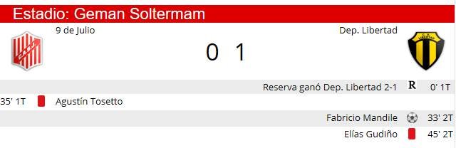 Sin embargo, los de Rivarossa se quedaron con un gran triunfo. La expulsión con roja directa de Agustín Tosetto en el cierre del primer tiempo, le permitió tener superioridad numérica a Libertad. Superioridad que pudo plasmar en el marcador cuando promediaba el complemento.