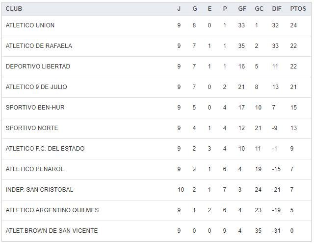 – Ben Hur 0 – Unión 3 (Diego Ruata, Thiago Strack y Julián Villarruel).