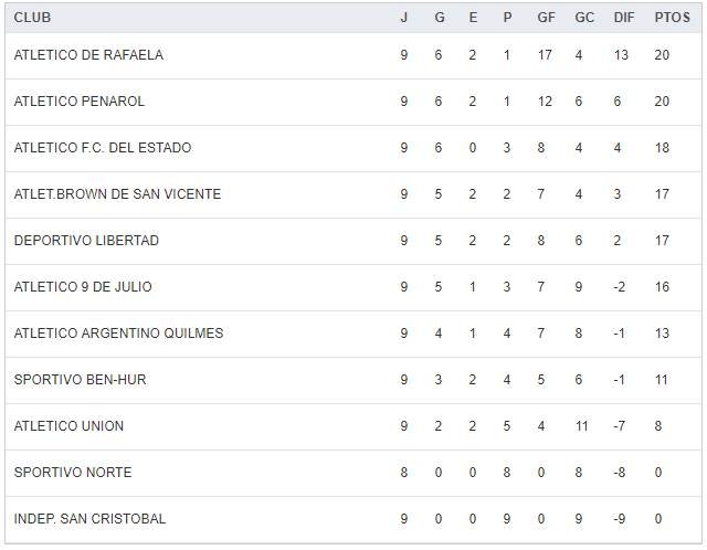 – Libertad 0 – 9 de Julio 0.