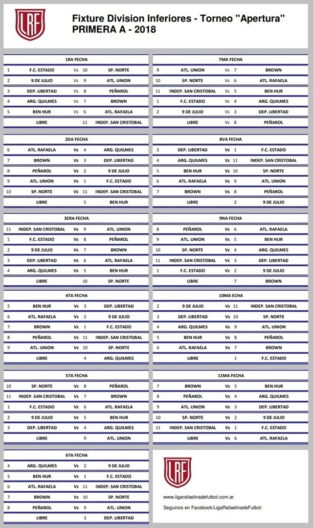 Este sábado se pone en marcha el Torneo Apertura liguista para las Divisiones Formativas. En nuestra ciudad, Libertad recibirá a Peñarol en Inferiores mientras que Escuelita viajará a Rafaela. Unión, visita al 9 con sus Inferiores y lo recibe en Escuelita.