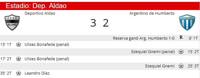 El equipo de Aldao volvió a ganar, esta vez ante Arg. Humberto, y es el único invicto de la Zona Norte con 5 puntos de diferencia sobre el segundo.