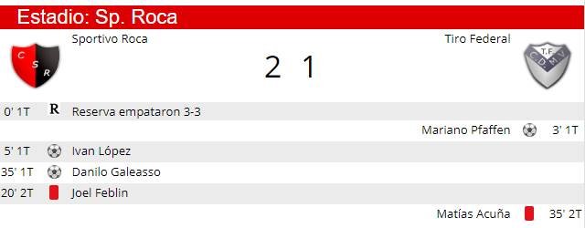 También hubo victoria de Sportivo Roca ante Tiro Federal de Moisés Ville.