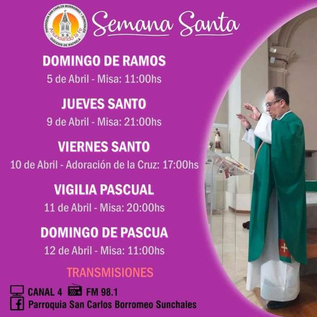 Sociedad Misas de Semana Santa 09/04/2020 Por Redacción SH 718 Compartir FacebookXWhatsAppEmail Transitando una de las semanas más especiales para la liturgia católica, desde la Parroquia «San Carlos» informaron cómo se realizarán las celebraciones de Pascuas, las cuales comienzan en la noche de hoy. TemasFernando Sepertinoparroquia San CarlosSemana Santa Compartir FacebookXWhatsAppEmail Relacionadas Parroquia «San Carlos» y sus actividades Pascuales 31/03/2026 Fernando Sepertino y sus 30 años de vocación sacerdotal 24/03/2026 Actividades parroquiales 13/03/2026 Ultimas noticias Ruta 34: Alerta por daños en la zona de la alcantarilla reparada 15/04/2026 Bochas: Destacada participación de la escuelita del Belgrano en San Guillermo 15/04/2026 ARB Formativas – F4: Actividad para los equipos de Unión 15/04/2026
