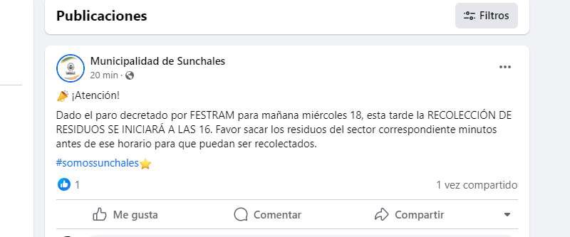 Mientras se confirma la medida de fuerza, el Municipio anticipó que en la jornada de hoy martes habrá un horario especial de recolección de residuos, iniciándose a la hora 16. De esta forma, se podrá completar el servicio antes de la medianoche, momento en que se inicia la nueva medida de fuerza.